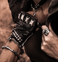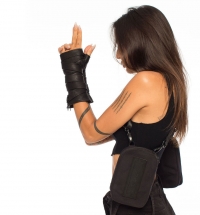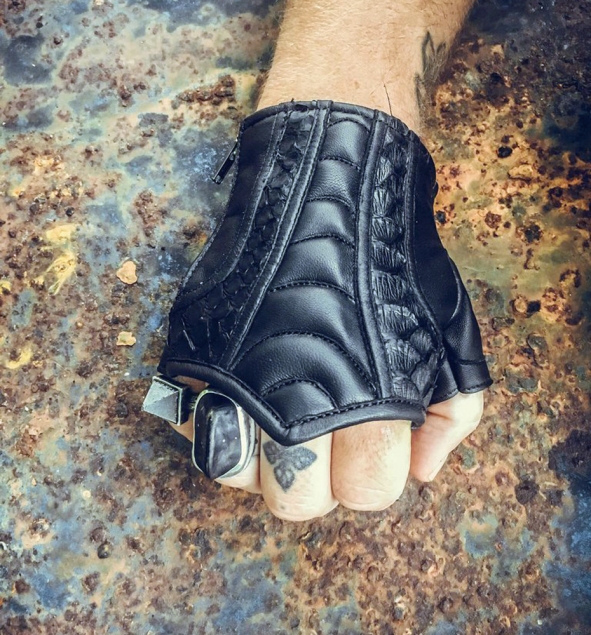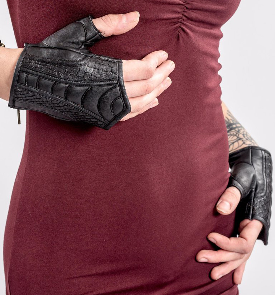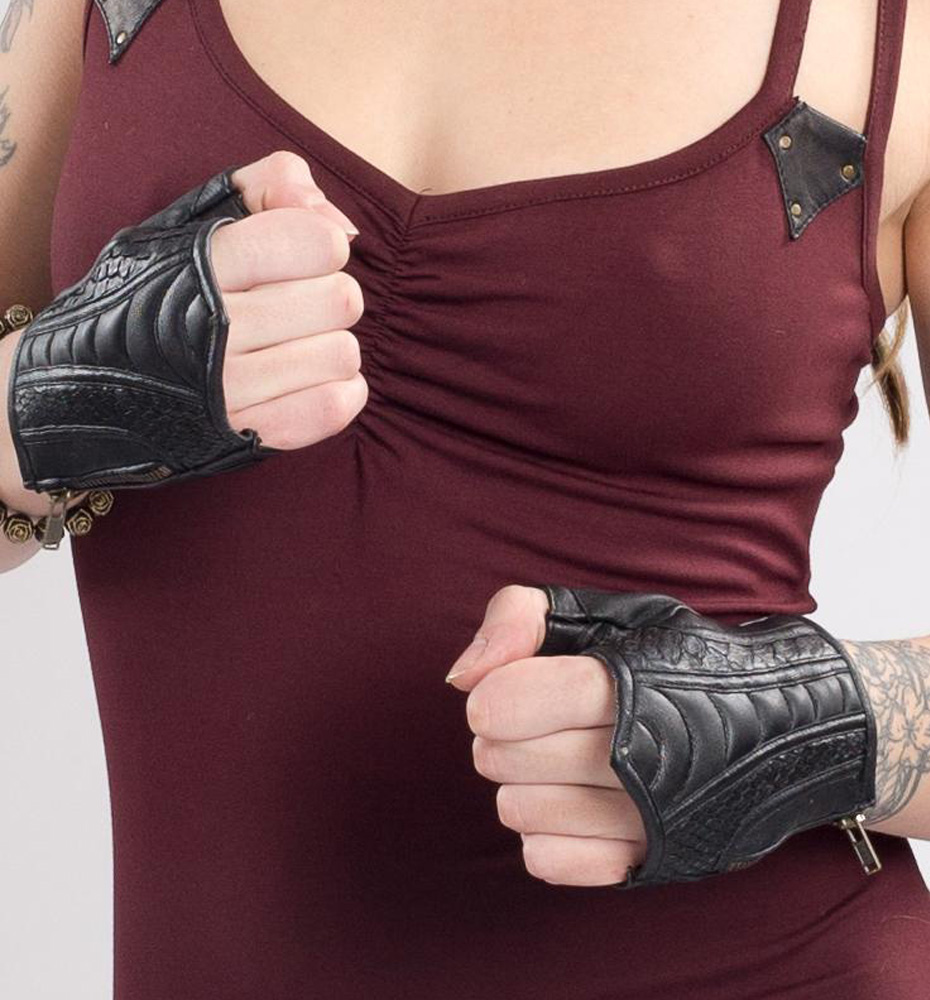The Aoilian fingerless leather gloves are made of Cabretta leather and python inlay, and are fully fingerless.