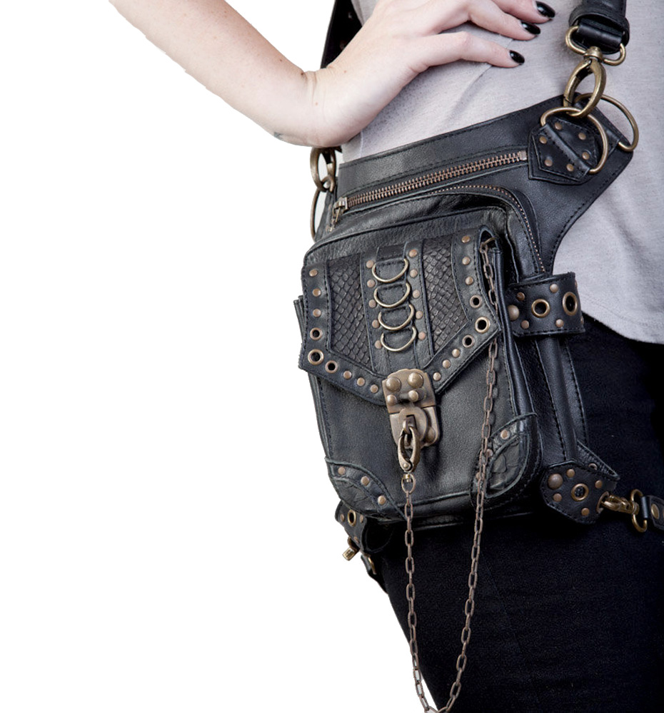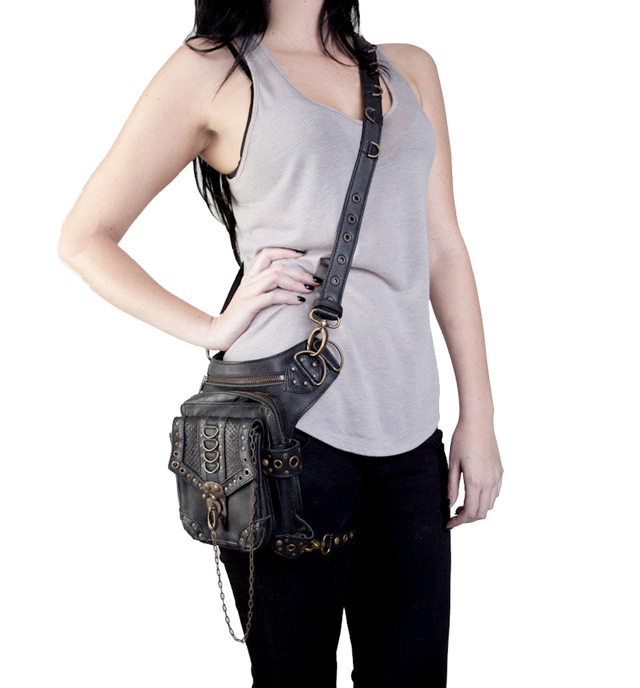 3. extended the straps full size to be worn like a bag/purse. (also remove the bottom leg strap and clip on wherever you want to create your own look or to detour muggers).