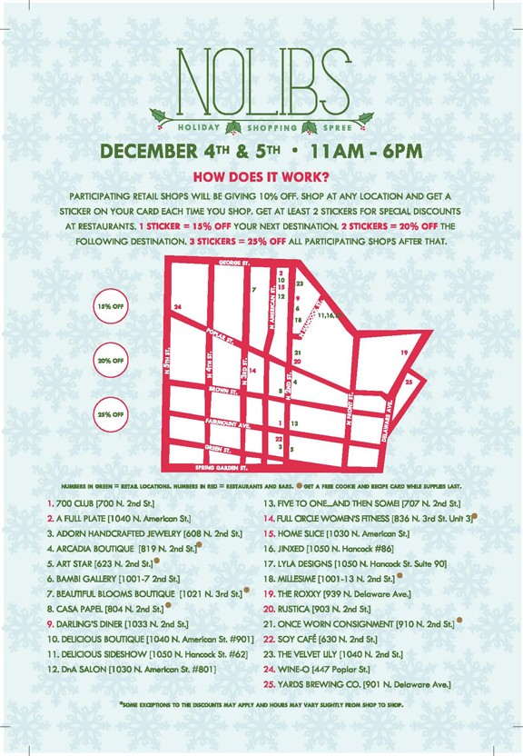 We hope you’ll join Delicious & the Northern Liberties community in celebrating the holiday festivities by participating in the NOLIBS Holiday Shopping Spree & Cookie Tour!
