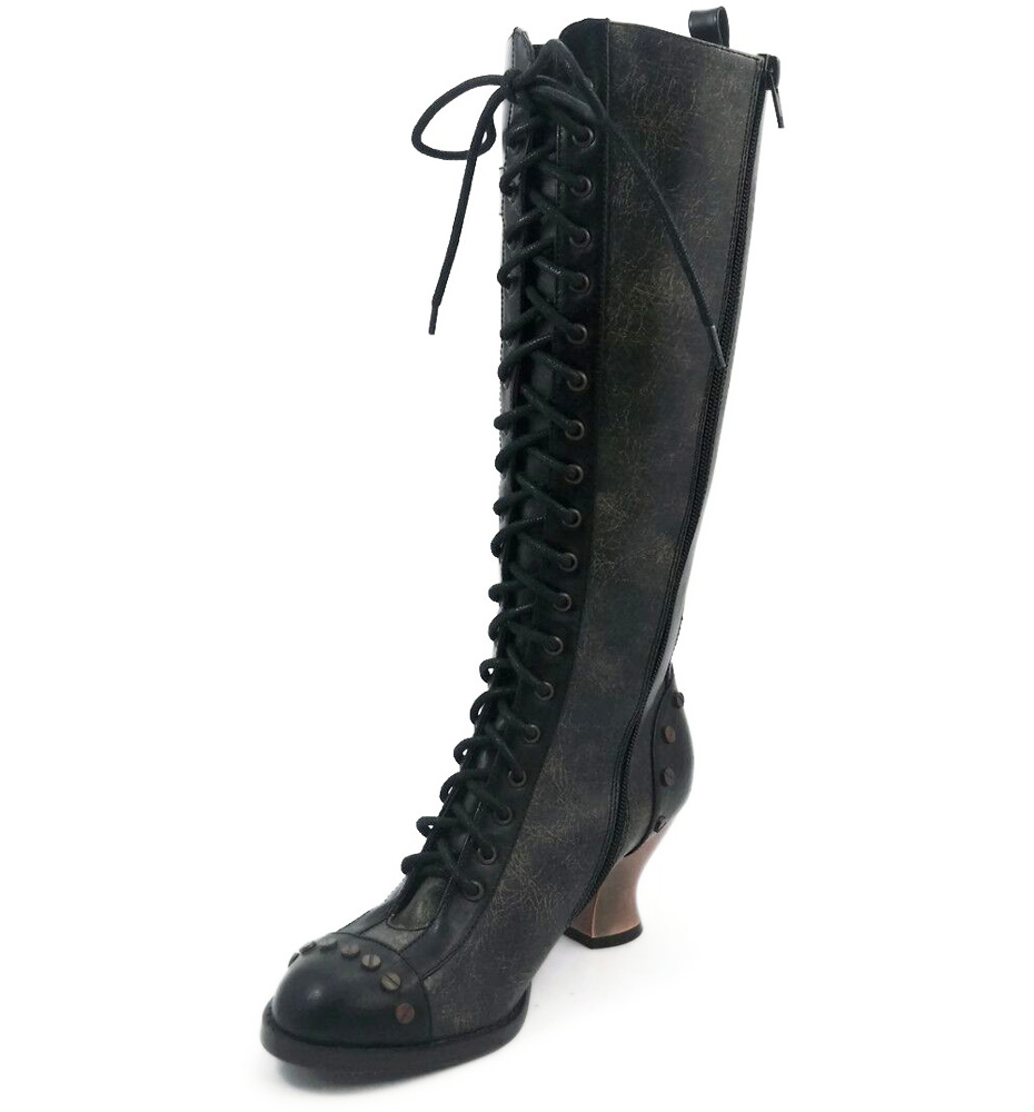 • Thundra PU Steampunk Retro Lace-Up Knee Boots