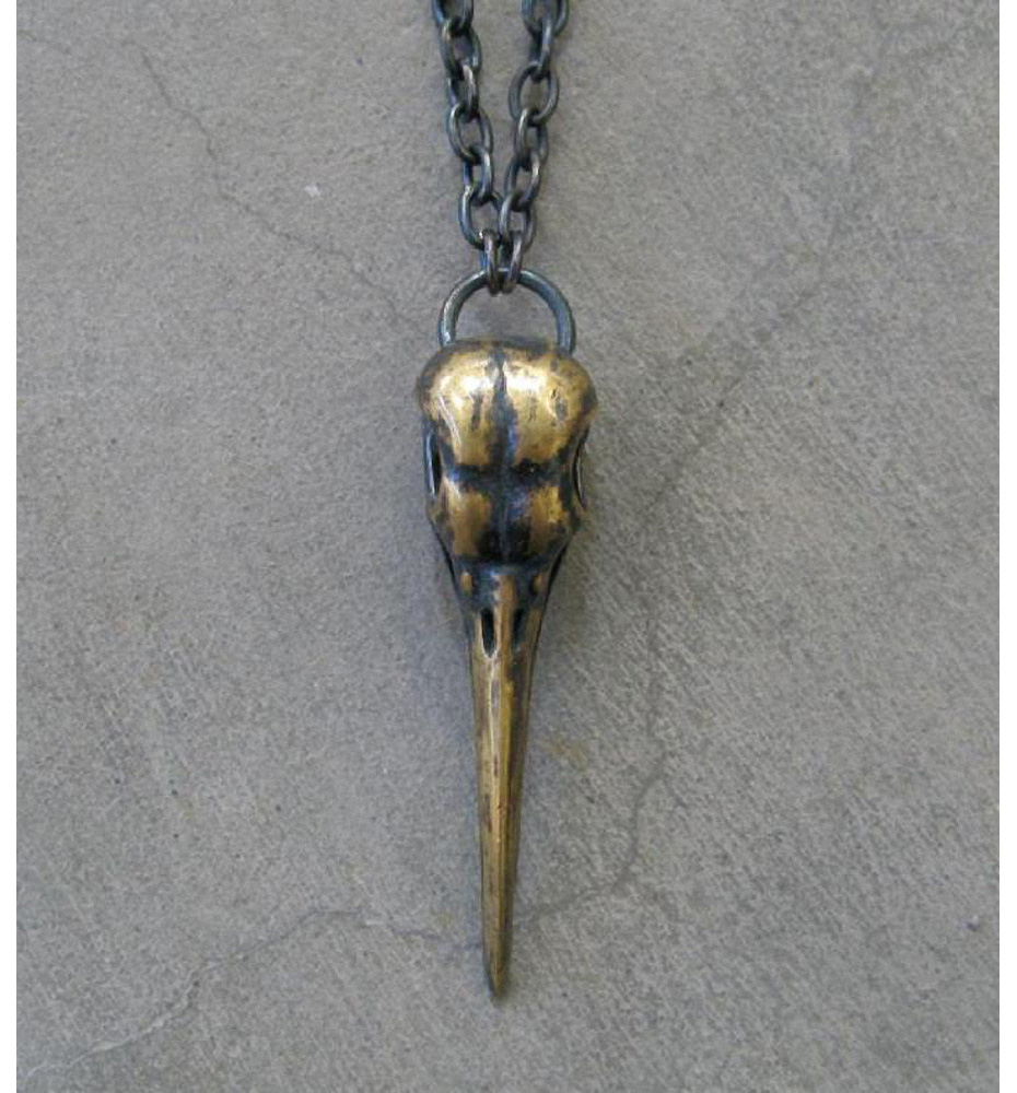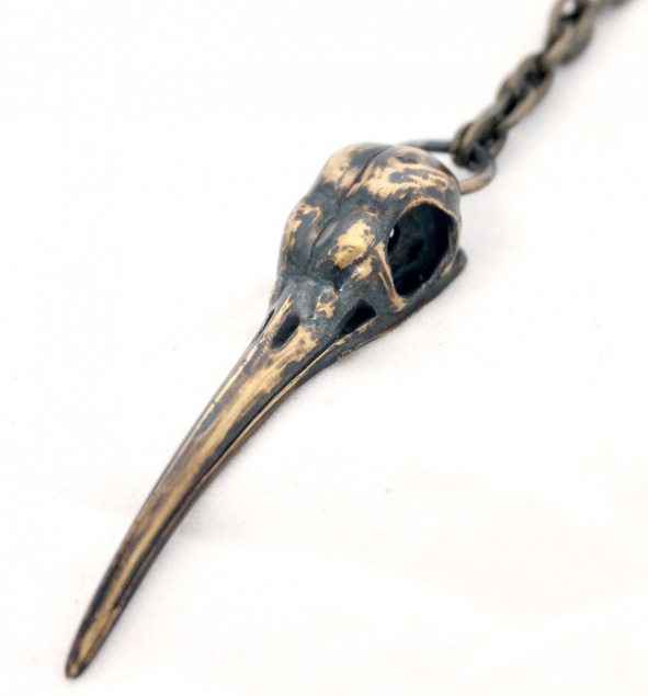 Hand cast solid brass pendant of a Hoopoe skull. 6 cm tall, 1.5 cm wide