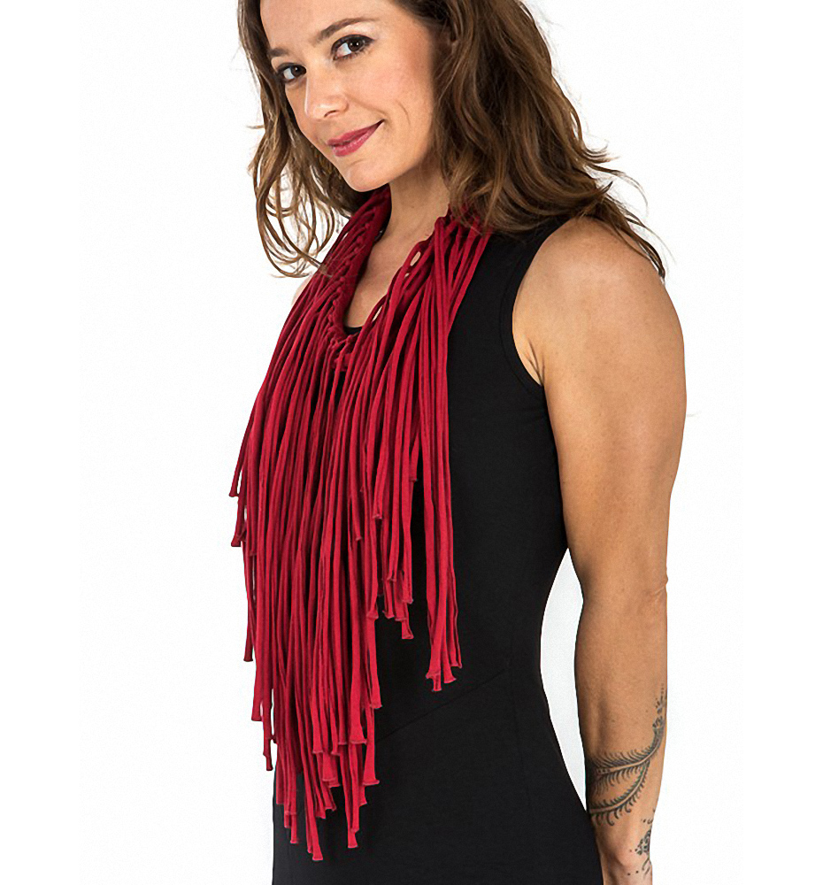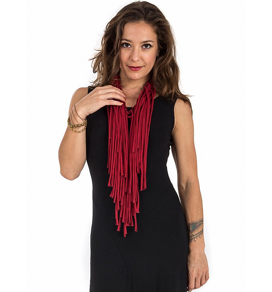 Inspired by cutting up old t-shirts, we took this a step further and made them extra long so you can twist them around twice for extra warmth or wear them long and twirl.