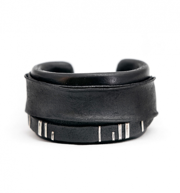 Materials: Oxidized steel, Genuine leather, Sterling silver details.