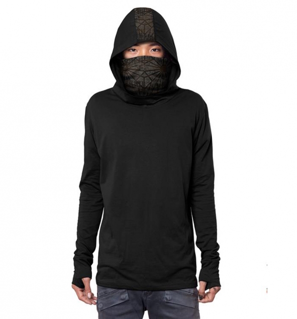 This hoodie is made of lightweight fabric with a high neck that lets you hide away in Ninja style!