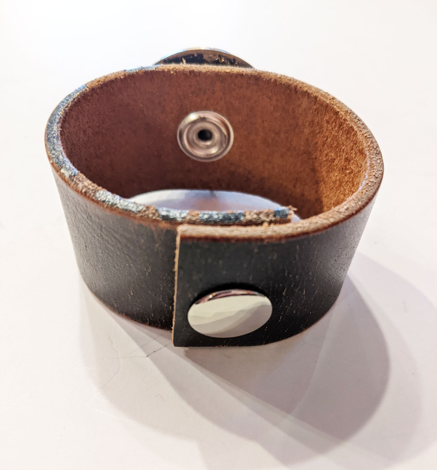 Leather cuff featuring authentic 1910 Elgin Watch workings.
