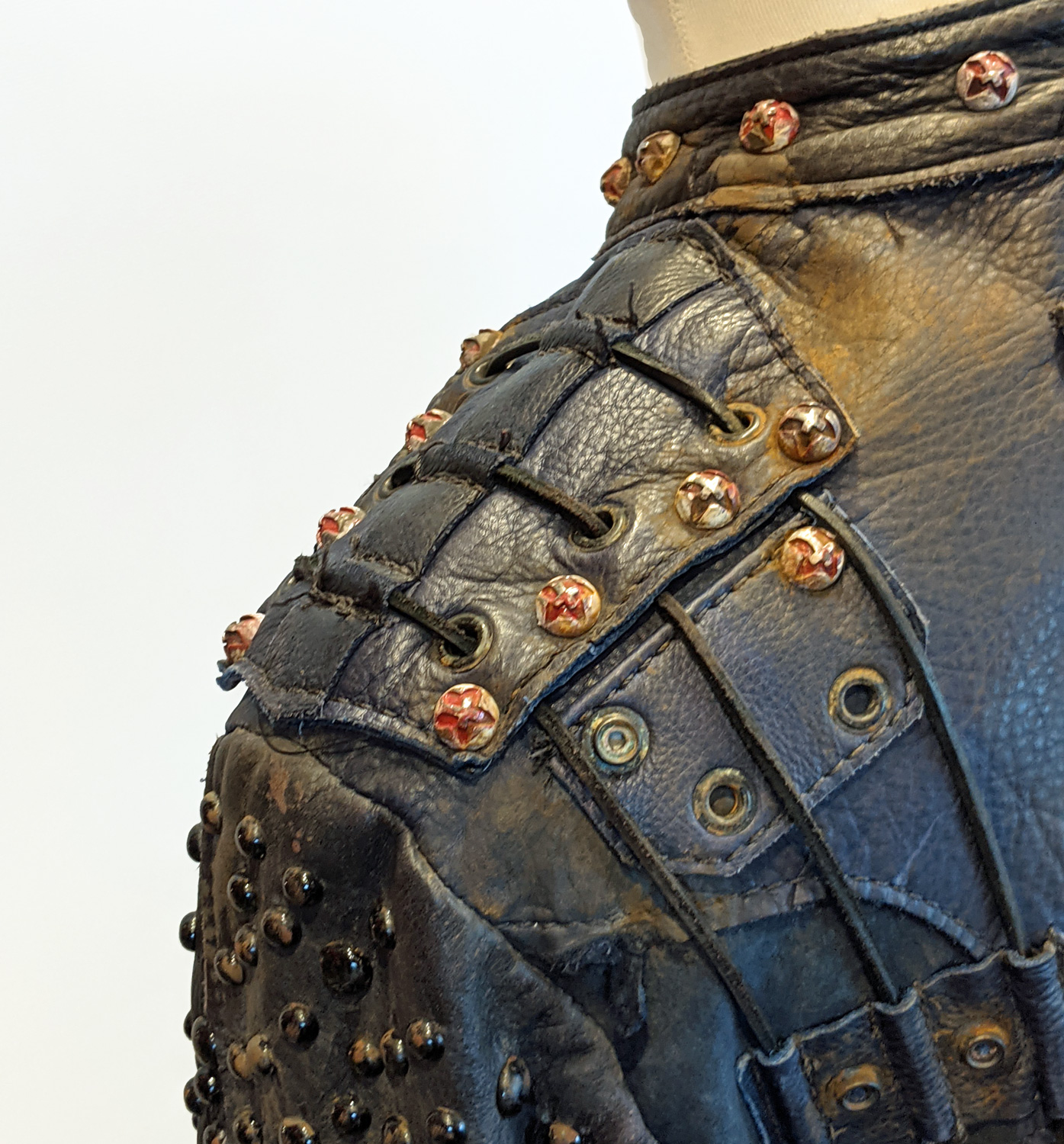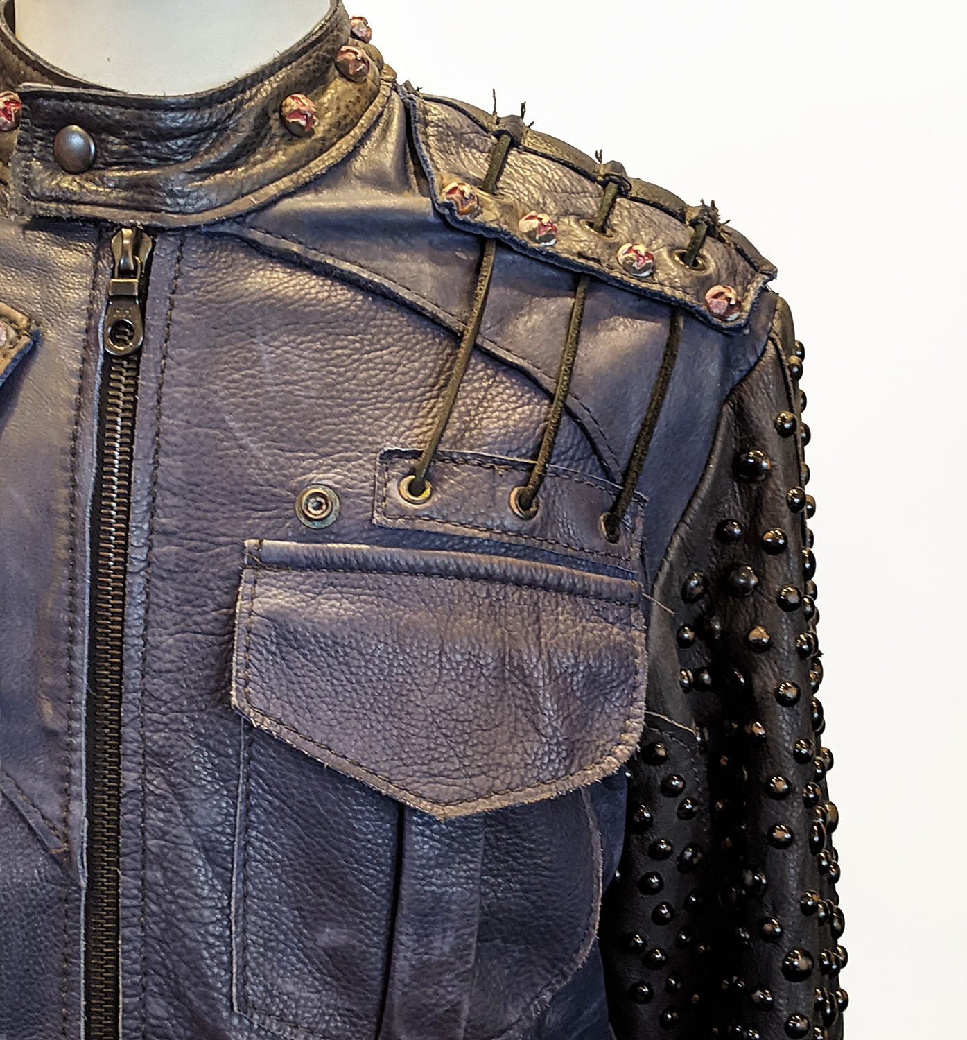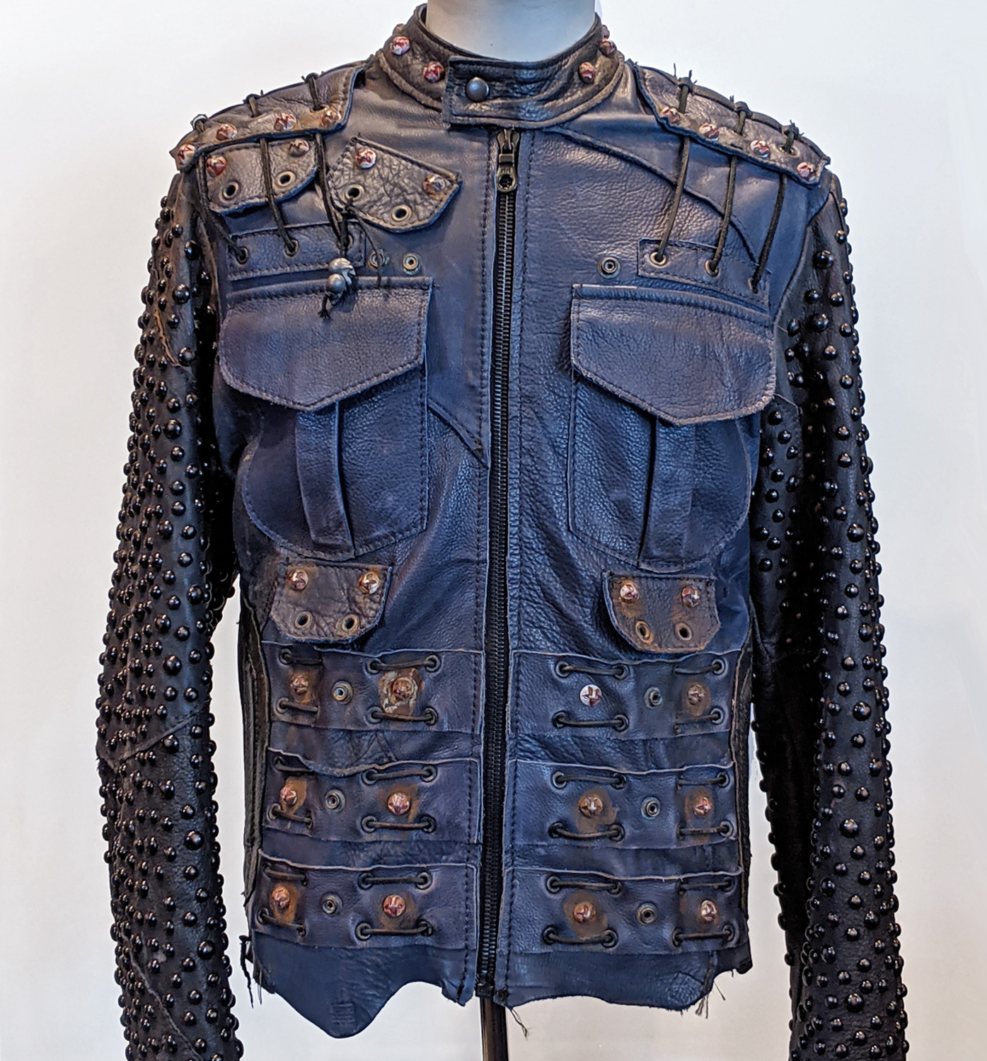 This is a very limited edition leather jacket with all the amazing details, intentional grime, and hardware you have come to love from Junker. Features Junker Hellstar Rivets, Midnight Blue leather body, Black leather sleeves, and lots and lots of black domes. Every piece is unique and aged for effect.