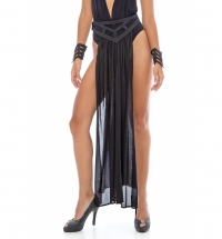 Sizing is adjustable by a series of snaps across the waistband of the skirt.