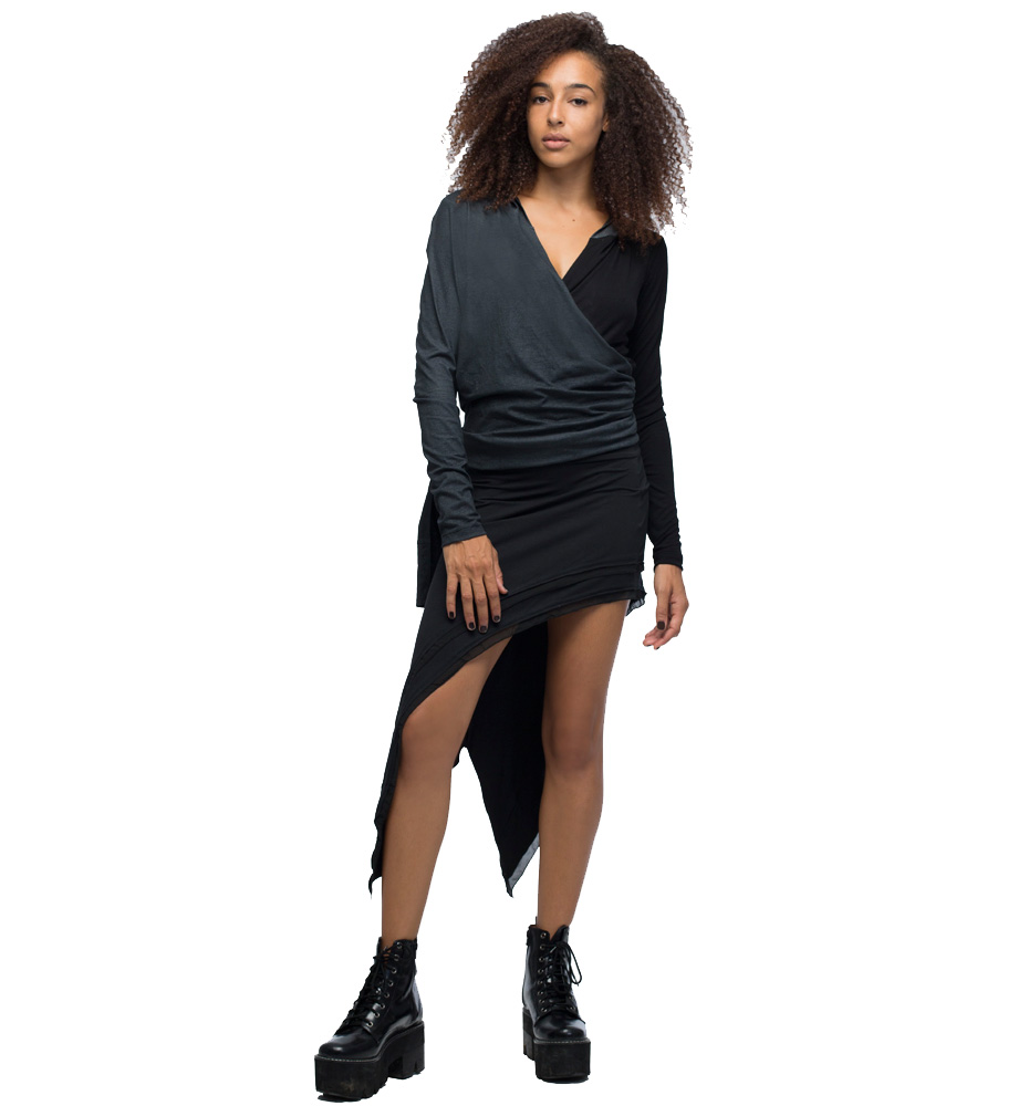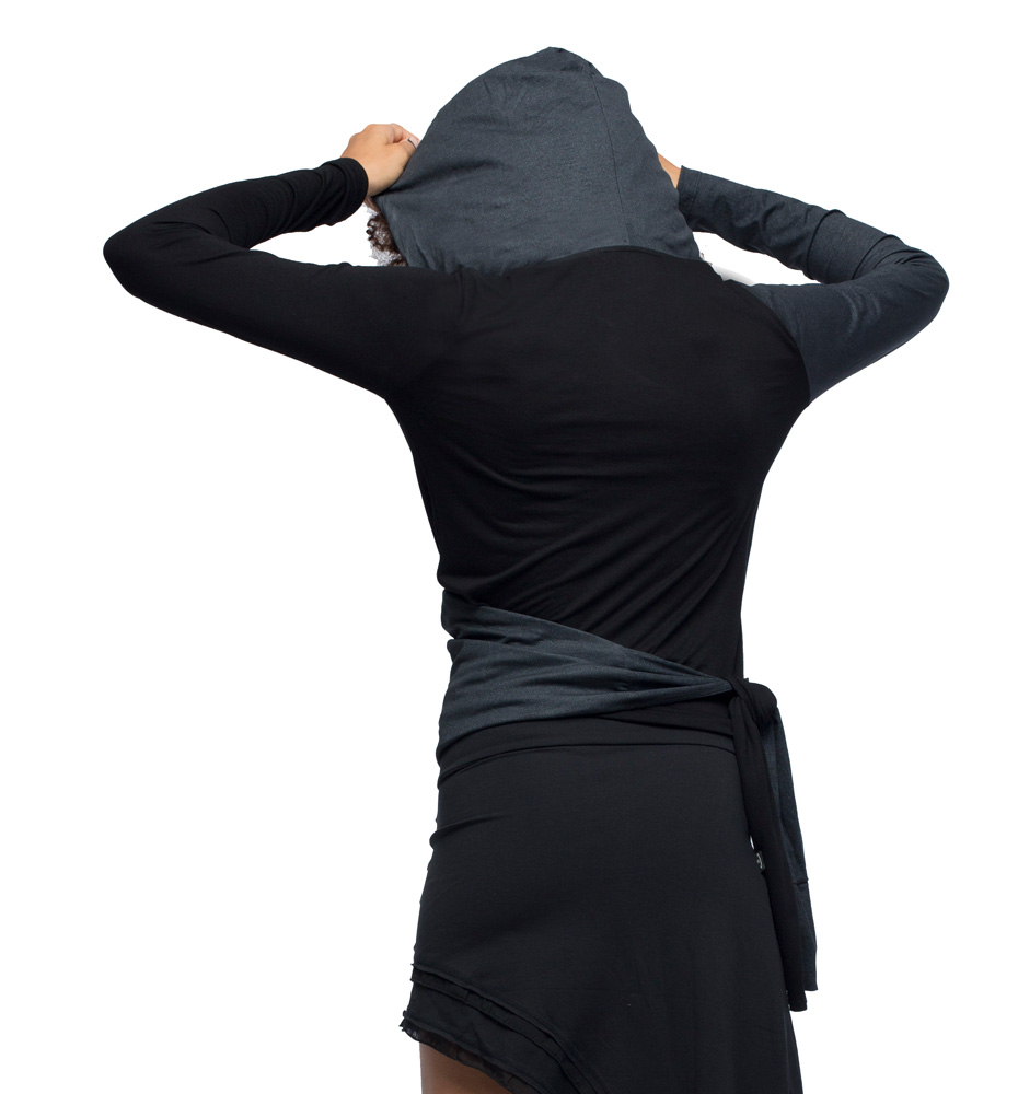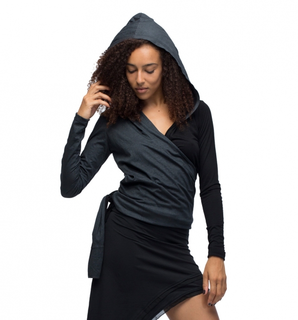 Hooded wrap long sleeve top.
