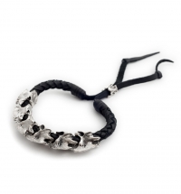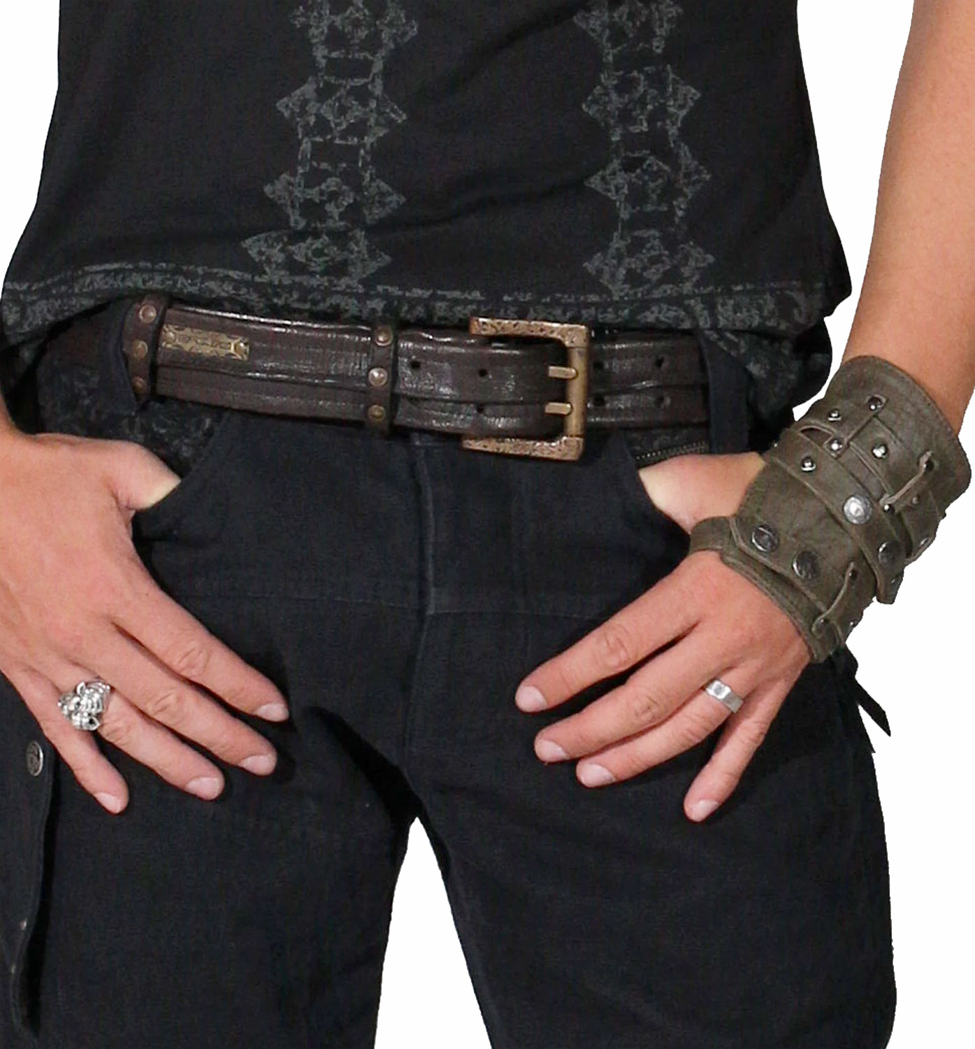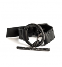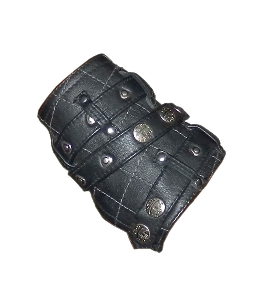 This luxurious leather wristband is adjustable to size with snap-buttons. Embellished with contrast stitching and custom-made metal studs.