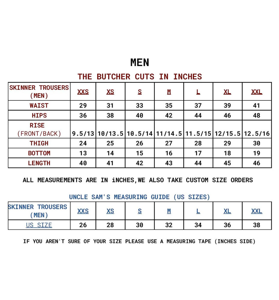 Butcher Apparel uses an International sizing standard. Please consult the chart below to determine your correct size for this item.