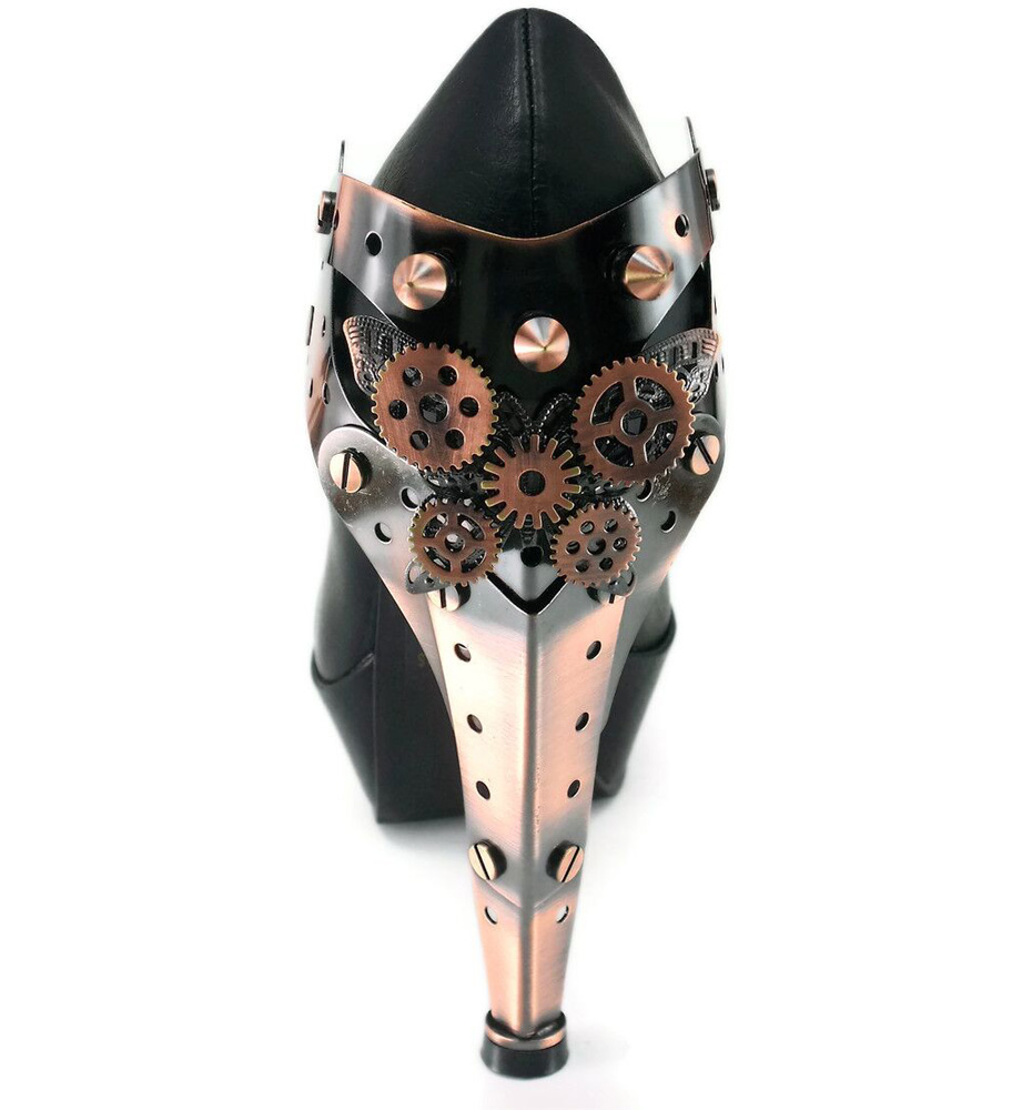 • 5" custom metal steampunk heel with butterfly, gears, and spikes. 1.5" platform