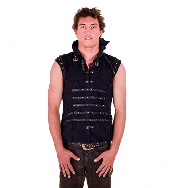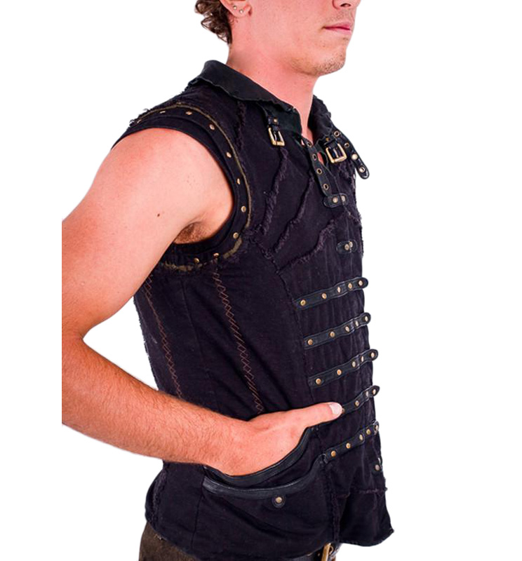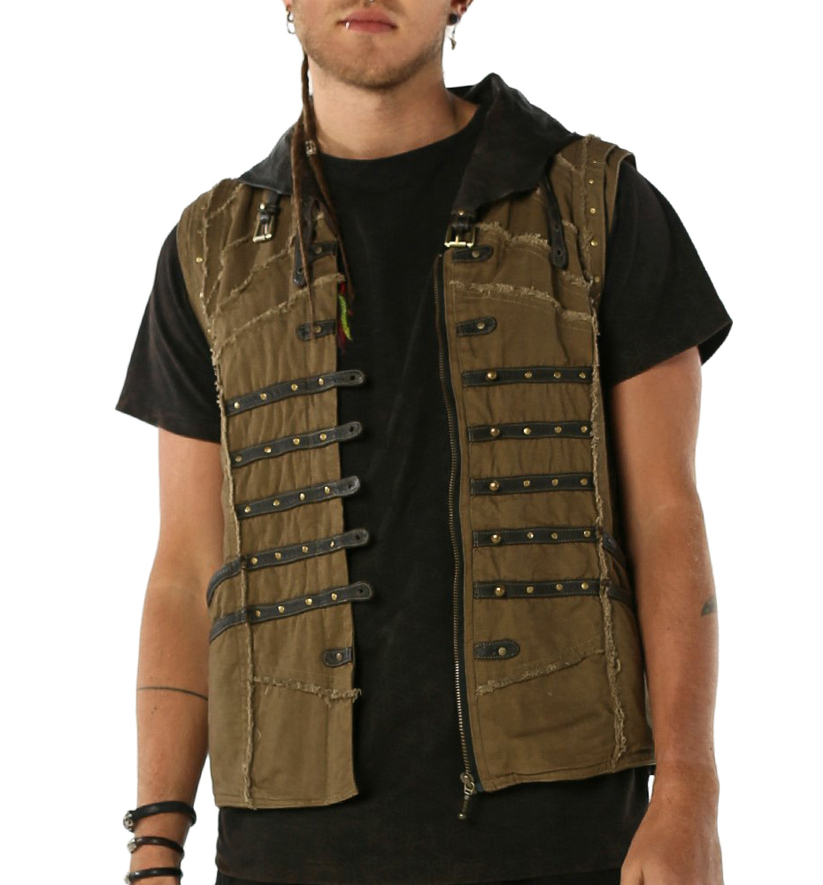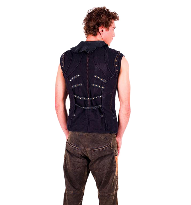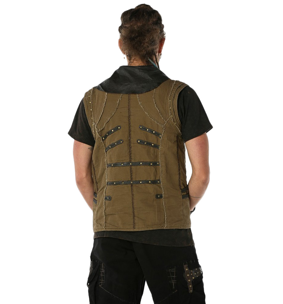 This very steamy vest is one of a kind, washed stressed with leather trimming. double pockets,and leather straps,all made in soft wavy like lines.Lined with fleece this vest will keep you warm and spunky!