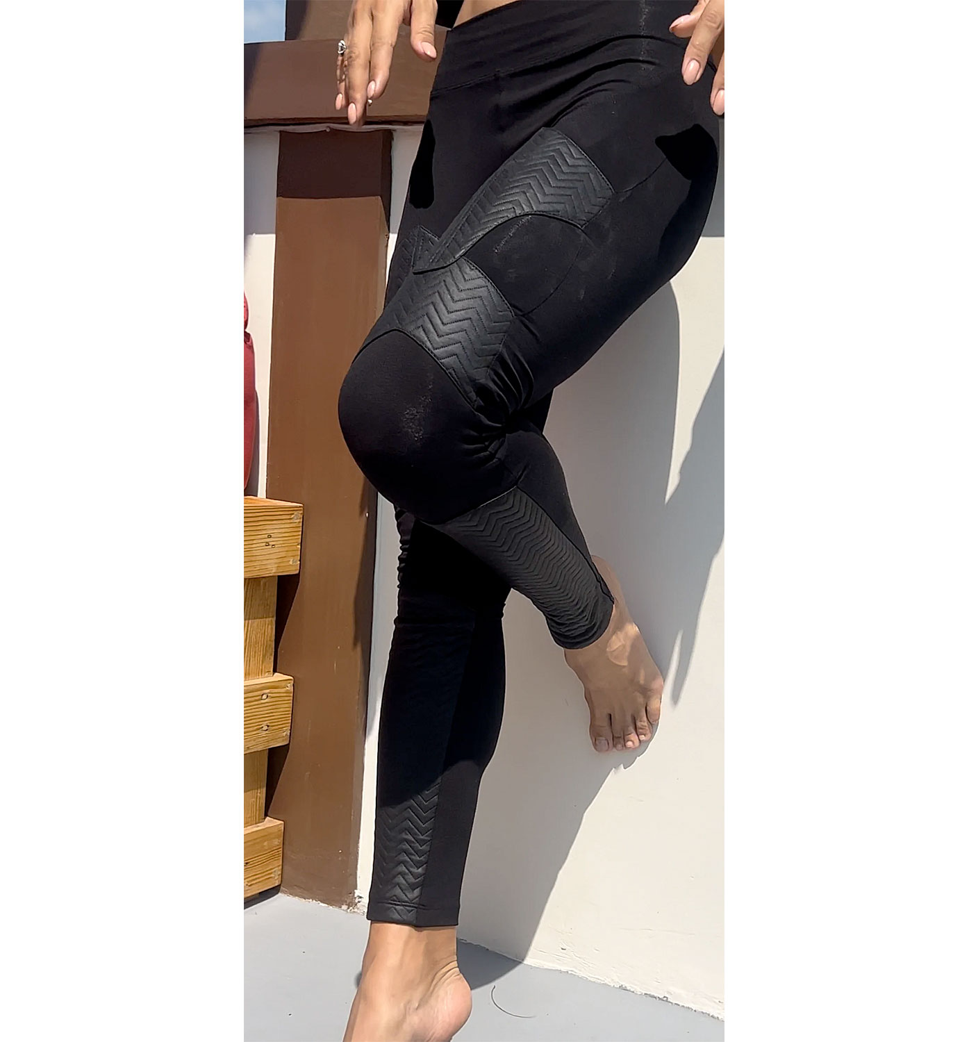 These sleek and cyberesque leggings are part of the Frequency Wavelength Collection. They're made with 40s Cotton/Lycra and leather-like vegan wavelength fabric.