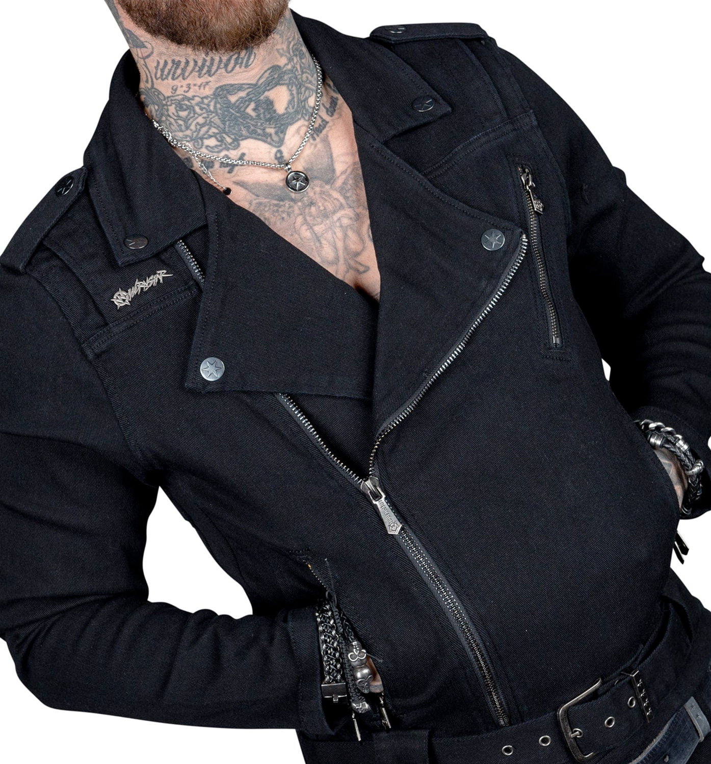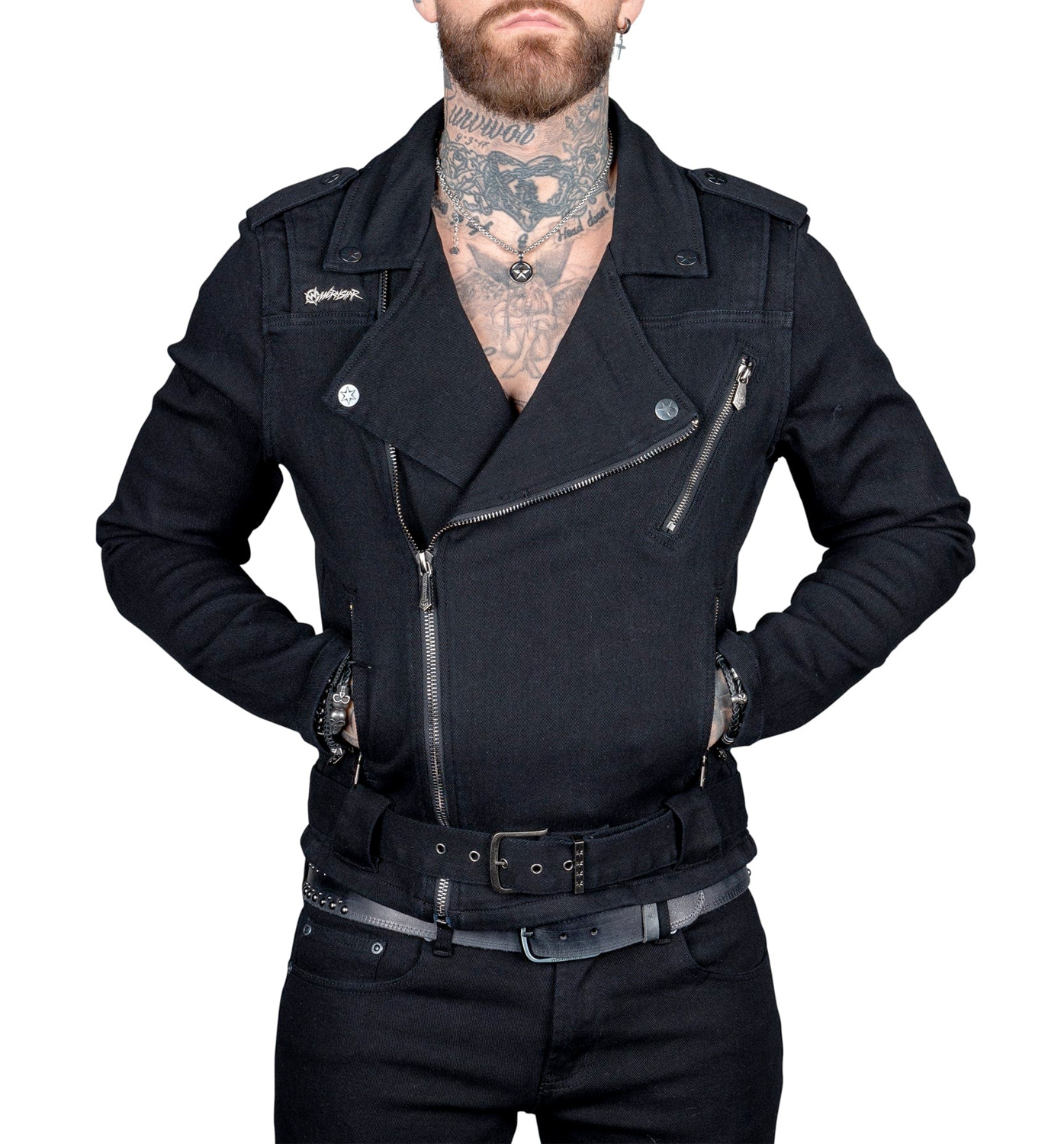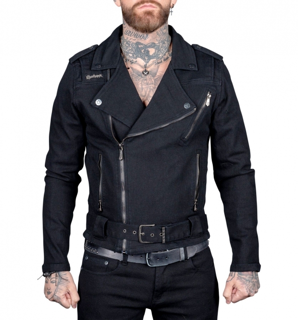 • Slim rock star fit biker cut denim jacket