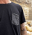 Handmade loose t-shirt made from a very soft cotton featuring a faux leather pocket.