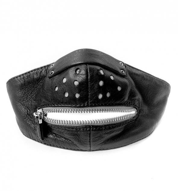 The Zipper Mouth Face Protection mask is made with soft premium garment leather. The middle nose section has holes in the leather, making the mask breathable. Underneath the holes is a middle layer of felt fabric that acts as a filter. Above the holes is a nose pinch with flexible aluminum allowing for it form to the contour of the nose. On the bottom is a functioning zipper, making it possible to talk or even eat with your mask on. The bottom layer is made with soft organic bamboo fabric that is comfortable on the face.